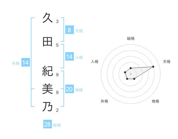 久田 紀美乃さんを姓名の画数から五運を鑑定