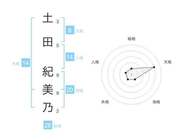 土田 紀美乃さんの総格は28画の1点!
