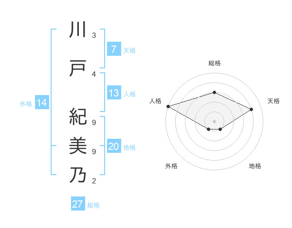 川戸 紀美乃さんを姓名の画数から五運を鑑定