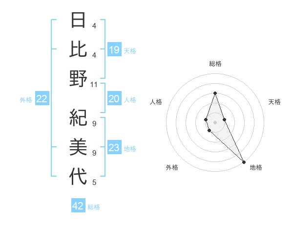 日比野 紀美代さんを姓名の画数から五運を鑑定