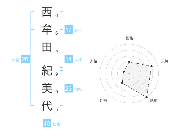 西牟田 紀美代さんを姓名の画数から五運を鑑定