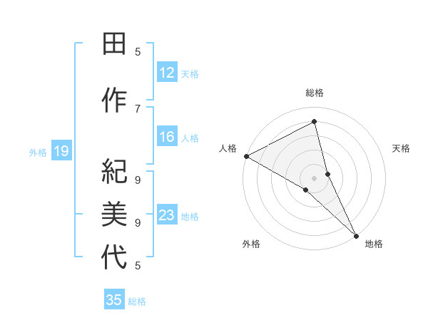 田作 紀美代さんの人格は16画の5点!