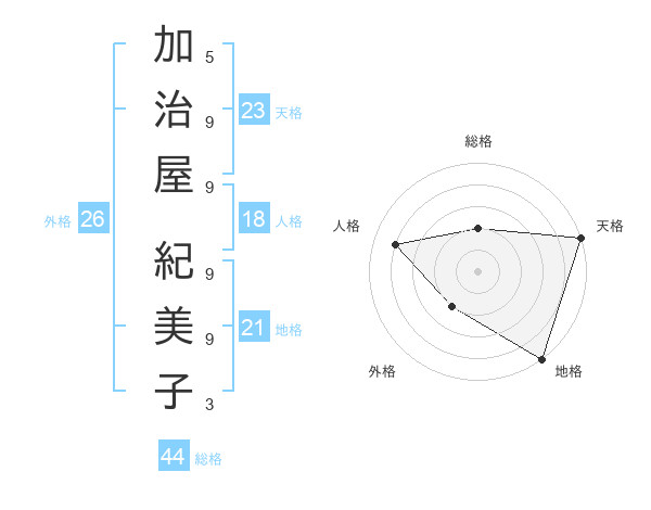加治屋 紀美子さんを姓名の画数から五運を鑑定