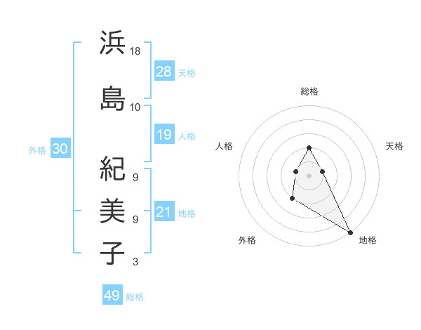 浜島 紀美子さんを姓名の画数から五運を鑑定
