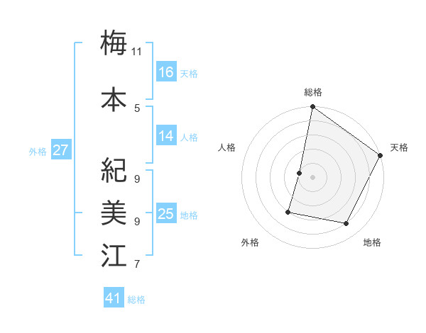 梅本 紀美江さんの総格は41画の5点!