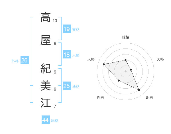 高屋 紀美江さんを姓名の画数から五運を鑑定