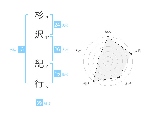 杉沢 紀行さんの外格は13画の5点!