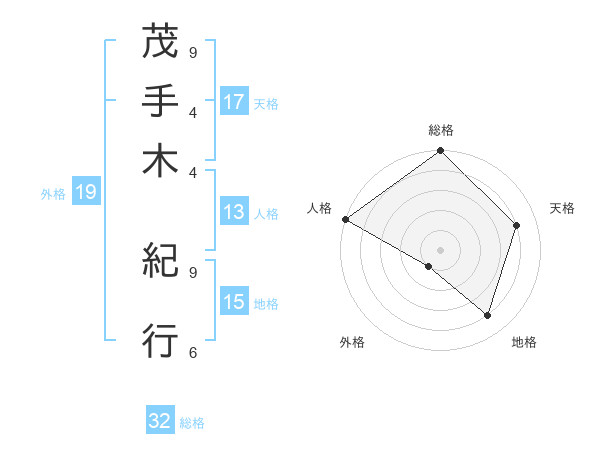 茂手木 紀行さんを姓名の画数から五運を鑑定