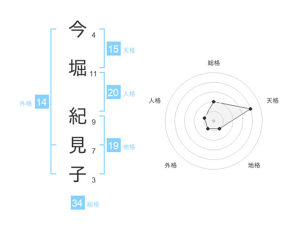 今堀 紀見子さんを姓名の画数から五運を鑑定
