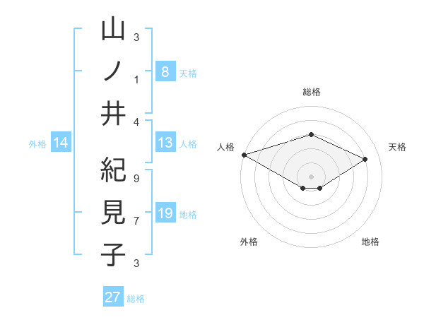 山ノ井 紀見子さんを姓名の画数から五運を鑑定