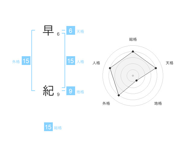 早 紀さんの外格は15画の4点!