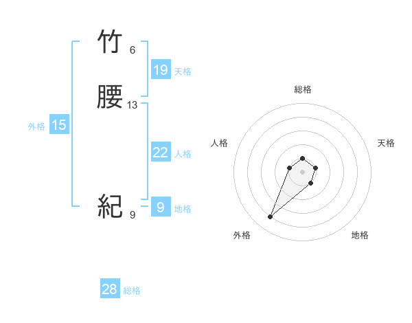 竹腰 紀さんの総格は28画の1点!