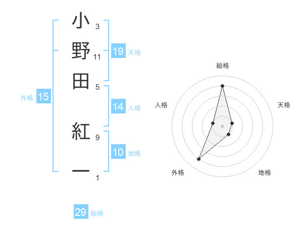 小野田 紅一さんの総格は29画の4点!