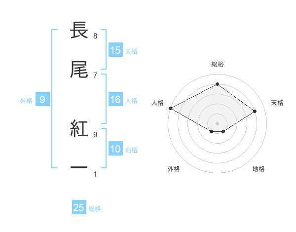 長尾 紅一さんを姓名の画数から五運を鑑定