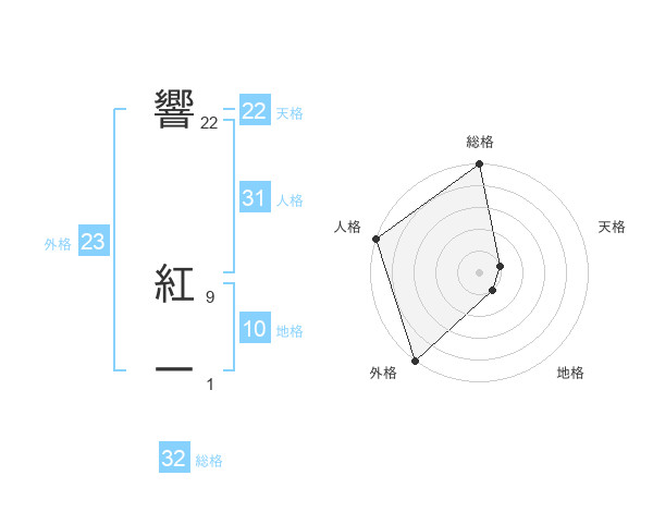 響 紅一さんの天格は22画の1点!