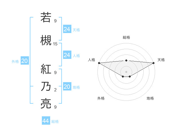 若槻 紅乃亮さんを姓名の画数から五運を鑑定