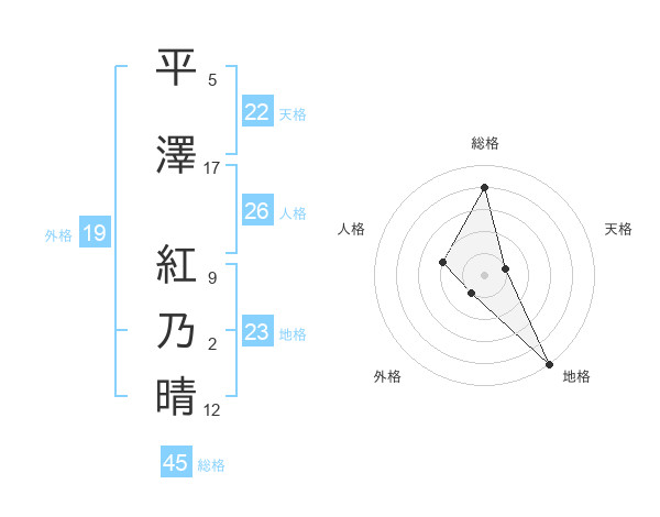 平澤 紅乃晴さんを姓名の画数から五運を鑑定