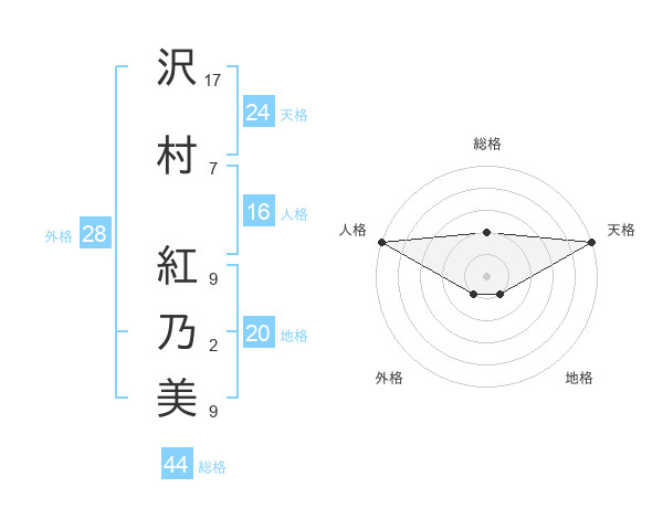 沢村 紅乃美さんを姓名の画数から五運を鑑定