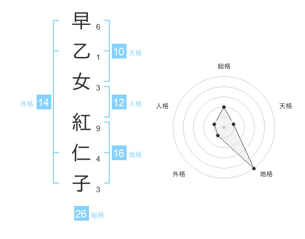 早乙女 紅仁子さんを姓名の画数から五運を鑑定