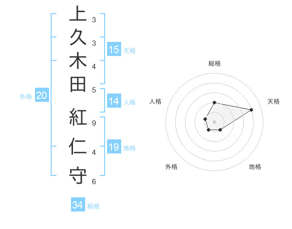 上久木田 紅仁守さんの天格は15画の4点