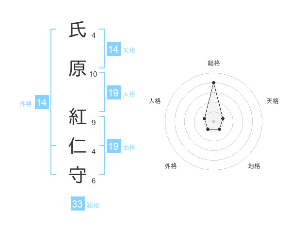 氏原 紅仁守さんの総格は33画の4点!