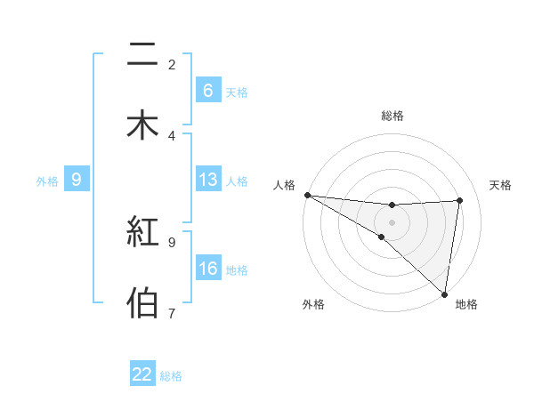 二木 紅伯さんを姓名の画数から五運を鑑定