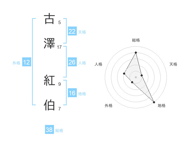 古澤 紅伯さんを姓名の画数から五運を鑑定