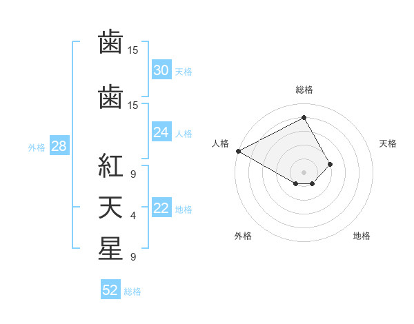 歯歯 紅天星さんを姓名の画数から五運を鑑定