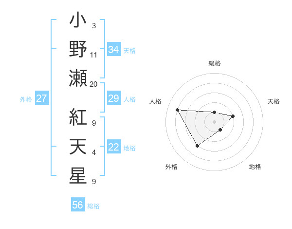 小野瀬 紅天星さんを姓名の画数から五運を鑑定