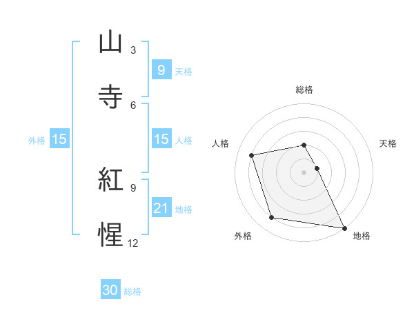 山寺 紅惺さんの総格は30画の2点!