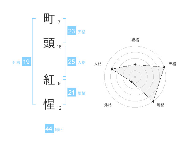 町頭 紅惺さんを姓名の画数から五運を鑑定