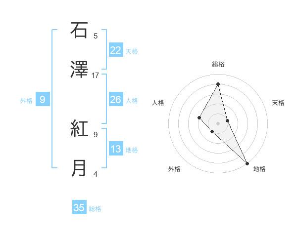 石澤 紅月さんを姓名の画数から五運を鑑定