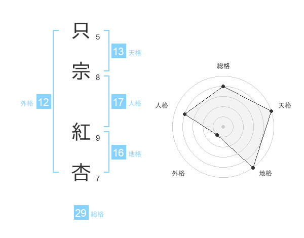 只宗 紅杏さんを姓名の画数から五運を鑑定