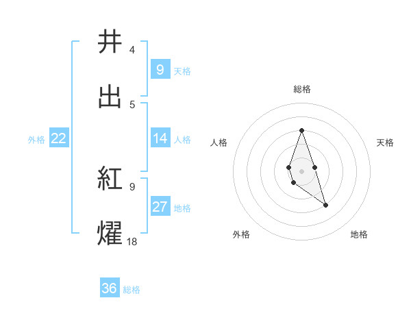 井出 紅燿さんの総格は36画の3点!