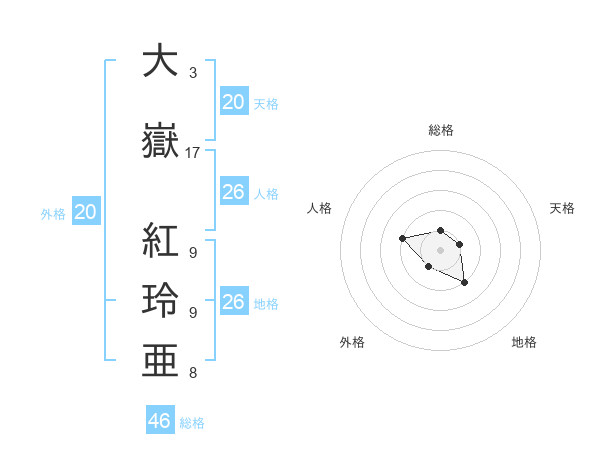 大嶽 紅玲亜さんの天格は20画の1点!
