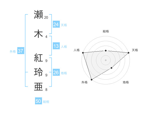 瀬木 紅玲亜さんの外格は37画の5点!