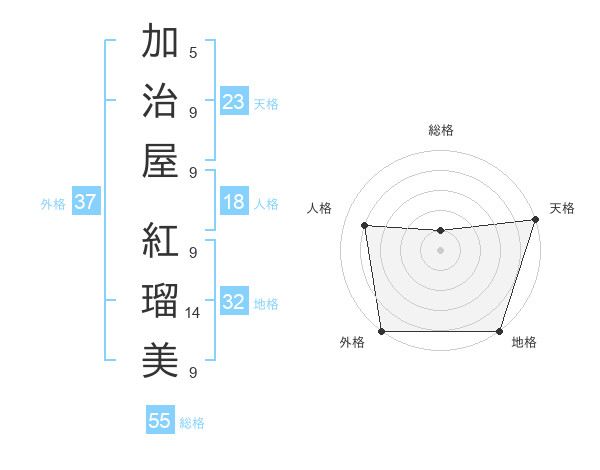 加治屋 紅瑠美さんを姓名の画数から五運を鑑定