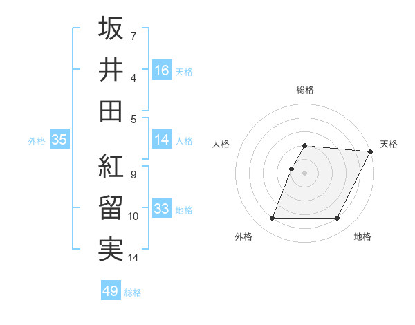 坂井田 紅留実さんを姓名の画数から五運を鑑定