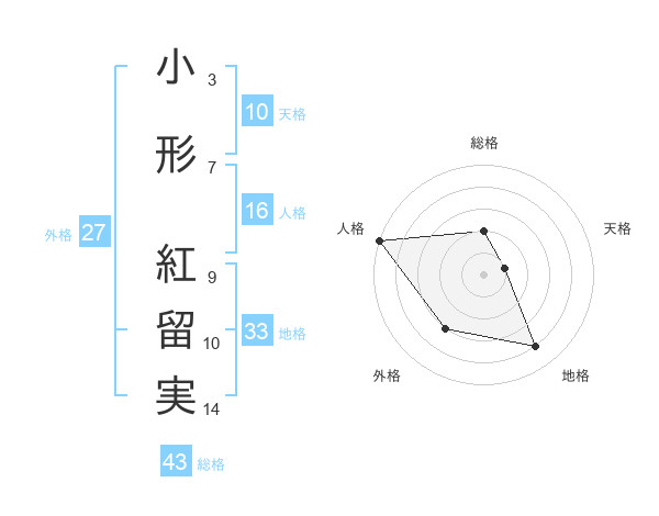 小形 紅留実さんを姓名の画数から五運を鑑定