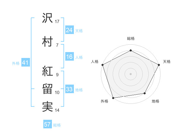 沢村 紅留実さんを姓名の画数から五運を鑑定