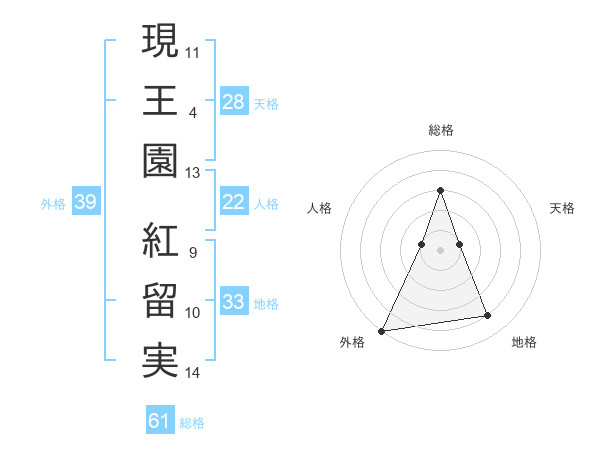 現王園 紅留実さんの外格は39画の5点!