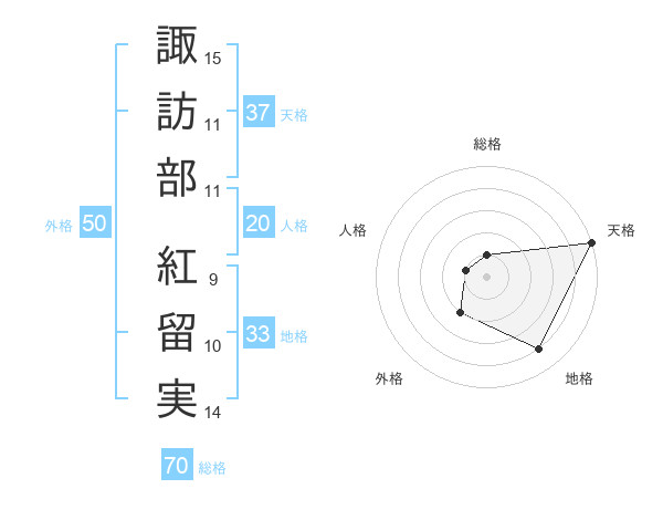 諏訪部 紅留実さんの天格は37画の5点!