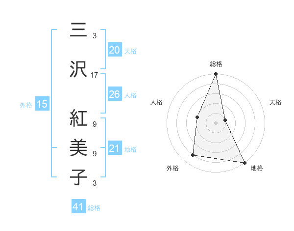 三沢 紅美子さんの総格は41画の5点!