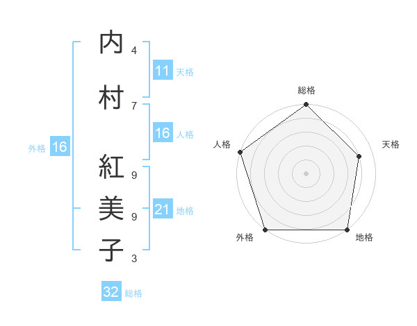 内村 紅美子さんを姓名の画数から五運を鑑定
