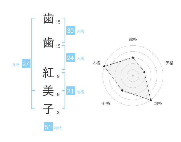 歯歯 紅美子さんを姓名の画数から五運を鑑定