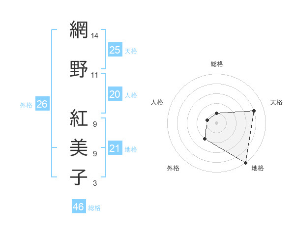 網野 紅美子さんを姓名の画数から五運を鑑定