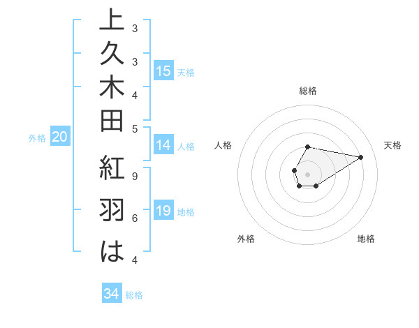 上久木田 紅羽はさんを姓名の画数から五運を鑑定