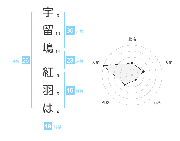 宇留嶋 紅羽はさんを姓名の画数から五運を鑑定