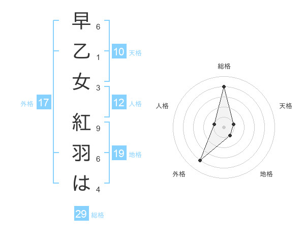 早乙女 紅羽はさんの総格は29画の4点