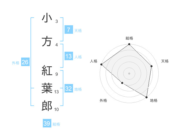 小方 紅葉郎さんを姓名の画数から五運を鑑定